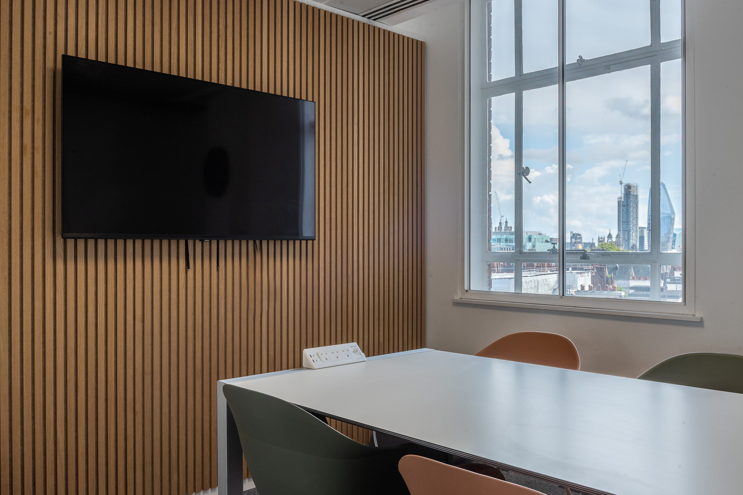 Stylish meeting room in central London, Holborn, fully equipped with the latest AV, highspeed wifi and conferencing facilities, bookable by the hour with a professional team on hand to ensure your meeting runs smoothly. What is included: Hi spec A/V equipment with 4K Ultra HD TVs - Internet connection – Highspeed Wifi - Flipchart & whiteboard - Purified water - Tea, Coffee and catering on request. Online booking times: 9am to 6pm Monday to Friday. Please contact us if you have a request outside these hours. All prices are inclusive of VAT.